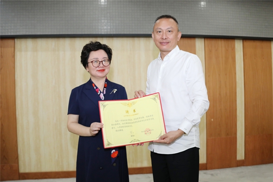 蹇宏(右)為(wèi)方麗(lì)華(左)頒發輪值副秘書(shū)長(cháng)聘書(shū)