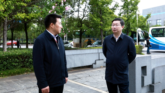 蔡開(kāi)雲與三峽日(rì)報(bào)社社長(cháng)覃進(左)交流