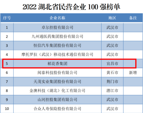 連續11年(nián)!稻花(huā)香蟬聯湖(hú)北(běi)民(mín)企百強