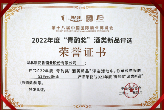 稻花(huā)香52度樂(yuè)山(shān)斬獲中國(guó)國(guó)際酒業(yè)博覽會(huì)“青酌獎”