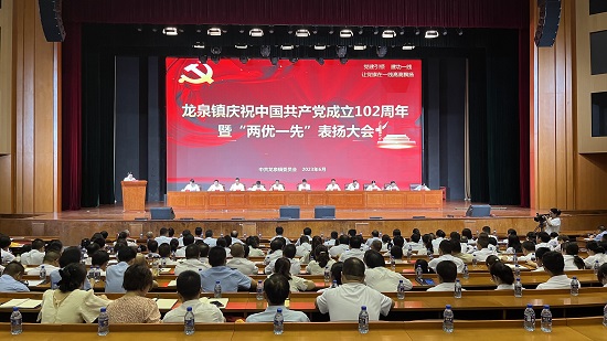 【概要(yào)描述】黨建引領,建功一(yī)線。6月(yuè)29日(rì)上(shàng)午,龍泉鎮慶祝中國(guó)共産黨成立102≥周年(nián)暨“兩優一(yī)先”表揚大(dà)會(huì)在房縣野人泉酒業有限公司大(dà)禮堂隆重召開(kāi)。會(huì)議(yì¶)進行(xíng)了(le)納新轉正、表揚先進典型、聆聽(tīng)書(shū)記黨課等議(yì)程,為(wèi)龍泉鎮高(gāo)★質量發展實現(xiàn)新突破、新跨越注入前行(xíng)活力、彙聚磅礴力量。