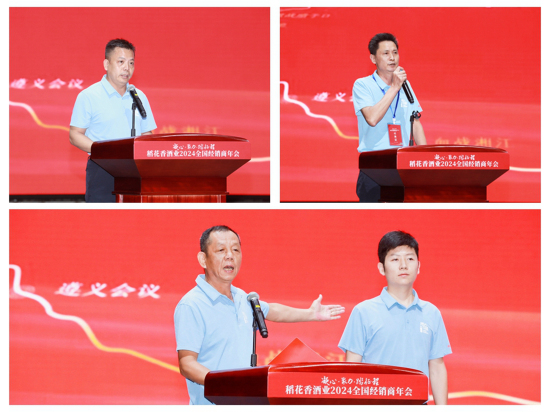 稻花(huā)香酒業(yè)公司副總經理(lǐ)兼省外(wài)南(nán)區(qū)經理(lǐ)宣讀(dú)《湖(hú)北(běi)稻花(huā)香酒業(yè)股份有(yǒu')限公司關于表彰2023年(nián)度優秀經銷商的(de)通(tōng)報(bào)》。公司副總經理(lǐ)陳小(xiǎo)磊宣讀(dú)《湖(hú)北(běi)稻₽花(huā)香酒業(yè)股份有(yǒu)限公司關于下(xià)達二〇二四年(nián)度回款與核心産品發貨任務的(de)通(tōng)知(zhī)》。