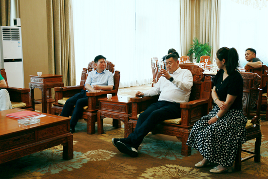 袁兵(bīng)(中)與羅賢強就(jiù)雙方戰略合作(zuò)進行(xíng)交流
