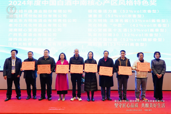 【概要(yào)描述】近(jìn)日(rì),第五屆中國(guó)白(bái)酒中南(nán)核心産區(qū)高(gāo)質量發展大(dà)會(huì)在廣西(xī)南(nán)丹舉行(xíng)。稻<花(huā)香52 度活力星憑借其卓越品質與獨特風(fēng)格,從(cóng)衆多(duō)參評酒樣中脫穎而出,榮獲“2024 年(nián)度中國(guó)白(bái)酒中南∞(nán)核心産區(qū)風(fēng)格特色獎”,稻花(huā)香酒業(yè)公司總工(gōng)程師(shī)陳小π(xiǎo)林(lín)上(shàng)台領獎。