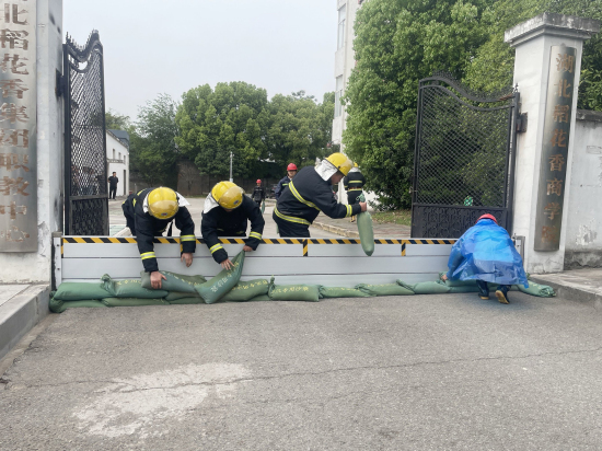 污水(shuǐ)處理(lǐ)站(zhàn)地(dì)勢低(dī),暴雨(yǔ)時(shí)洪水(shuǐ)大(dà)量湧入,對(duì)員(yuán)工(gōng)人(rén)身(shēn)安全和×(hé)公司财産安全造成隐患。本次演練以“特大(dà)暴雨(yǔ)導緻廠(chǎng)區(qū)積水(shuǐ)倒灌、污水(sh&uǐ)處理(lǐ)站(zhàn)積水(shuǐ)”為(wèi)模拟背景,設置兩大(dà)場(chǎng)景,其一(yī)是(shì)廠(chǎng)區(qū)積水(shuǐ)封堵和(Ωhé)排澇,應急小(xiǎo)分(fēn)隊人(rén)員(yuán)先用(yòng)防洪闆擋住污水(shuǐ)處理(lǐ)站(zhàn)大(dà)門(méδn)處洪水(shuǐ),再将袋堵住擋闆底部,安保科(kē)人(rén)員(yuán)接到(dào)通(tōng)知(zhī)後迅速趕來(lái)增援,協助搬運沙袋。其二是(shì)對(duì)&重點區(qū)域進行(xíng)防護,模拟污水(shuǐ)處理(lǐ)站(zhàn)機(jī)房(fáng)進水(sh>uǐ),搶險人(rén)員(yuán)搬運沙袋将機(jī)房(fáng)門(mén)口堵住,防止洪水(shuǐ)滲入。